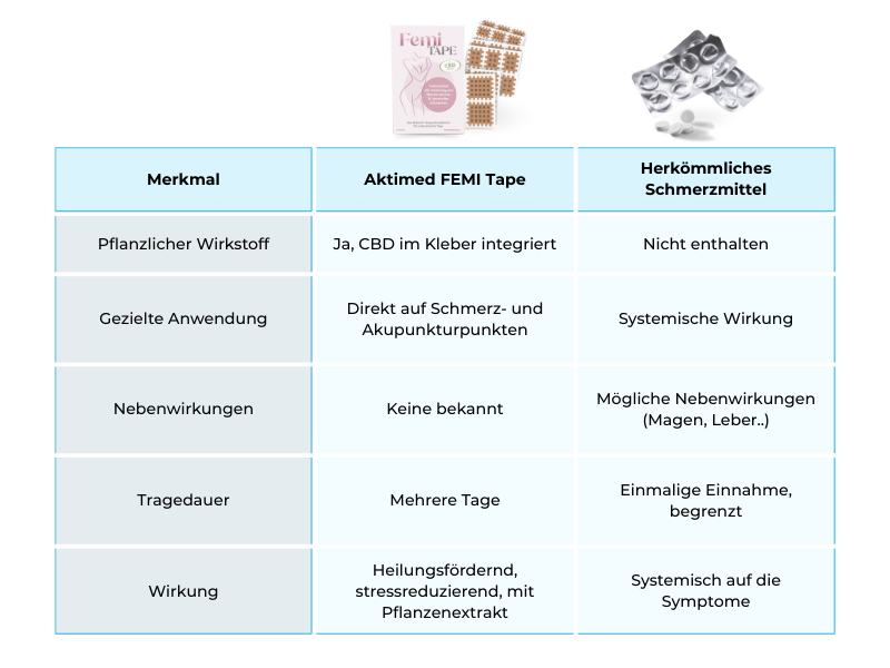 Das FEMI TAPE wurde speziell für Frauen entwickelt. Der patentierte Zusatz von CBD Extrakt im Klebstoff und der Mechanismus der Akupressur kann bei Menstruationsschmerzen, Unterleibskrämpfe und Verspannungen unterstützen. Durch die Kombination der bewährten Gitterpflaster-Technologie mit hochwertigem CBD-Extrakt unterstützt das FEMI TAPE gezielt die Muskelentspannung und fördert das Wohlbefinden an den Tagen, an denen Sie es am meisten brauchen.