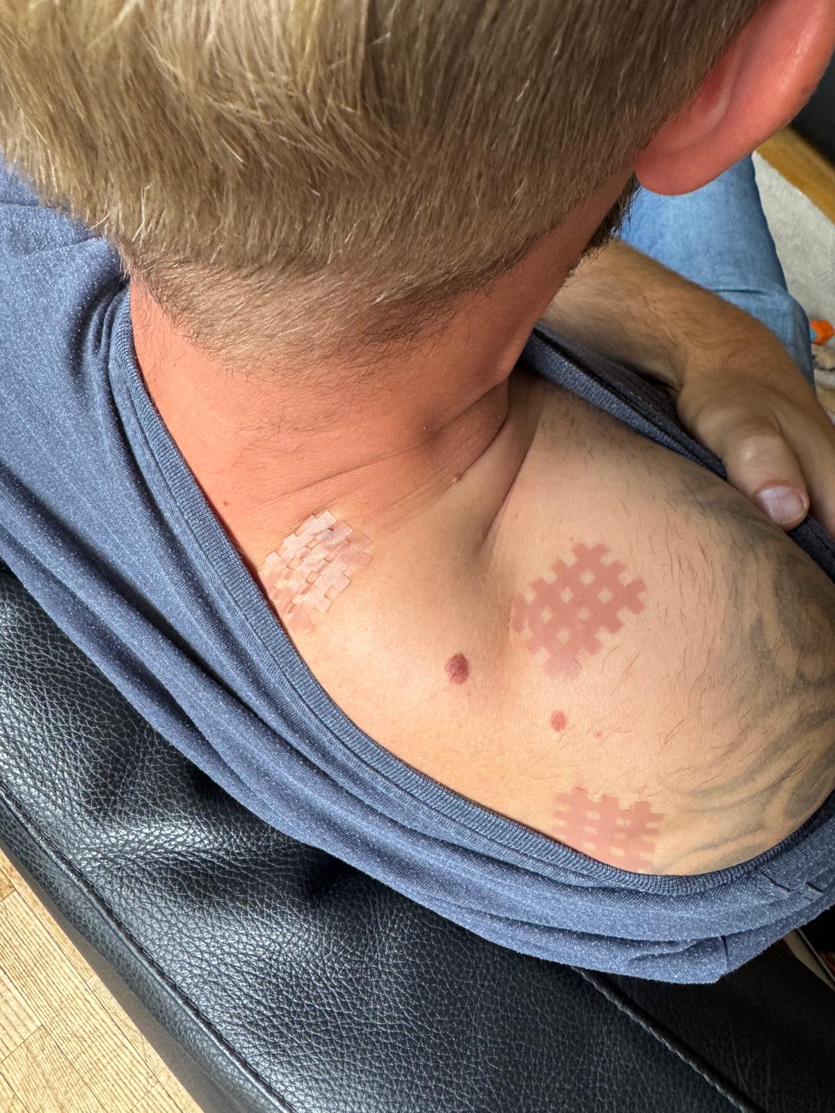 - Bei Hautreaktionen wie Juckreiz oder Rötungen das Tape sofort entfernen!